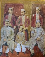 Raja Durga Prasad (Centre) with Kr.Kamta Prasad (2nd on his Right), Kr. Jwala Prasad (On Raja Saheb's Left), Kr. Brij Bahadur( Sitting 3rd from Right), Kr. Sukhraj (Standing behind Raja Saheb's Right).