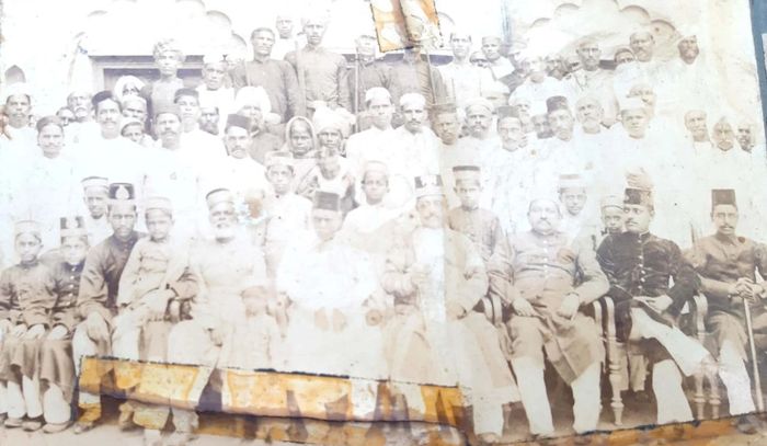 Sitting (Left to Right): Kr. Kamta Prasad, Kr. Jwala Prasad and Raja Durga Prasad. Identity of Standing members not known.